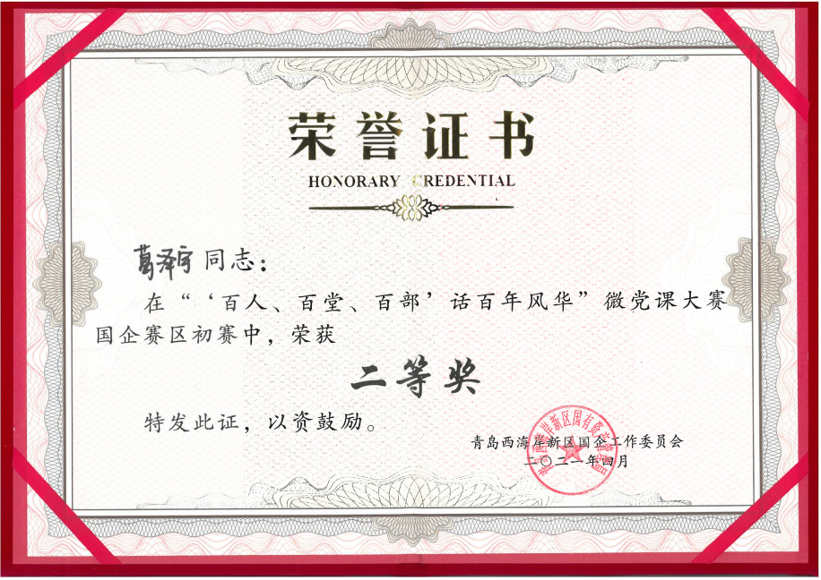 為慶祝中國共產黨成立100周年,感召廣大黨員群眾學黨史、頌黨恩、跟黨走,以“勇擔當、走在前、作表率”的精神辦實事、開新局,4月9日, 新區“‘百人、百堂、百部’”話百年風華微黨課國企賽區在西海岸公用事業集團服務中心舉行。