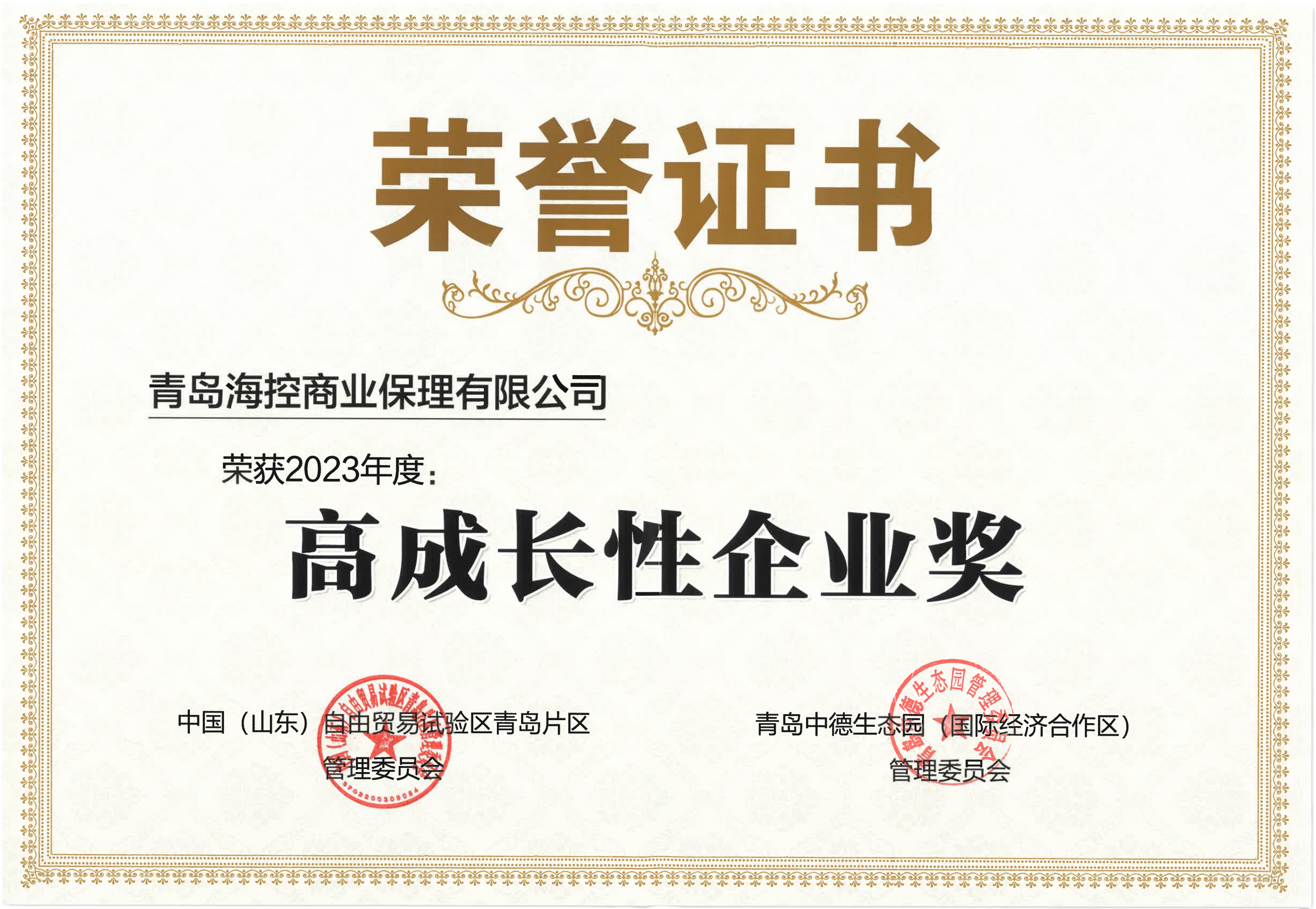 ▲海控保理榮獲自貿片區2023年度“高成長性企業獎”
